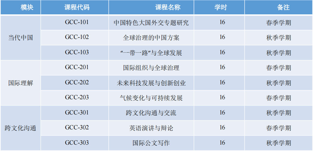 课程设置:项目学制为一年(2023年春季学期至秋季学期),一般安排在学期内每周末进行授课、讲座,具体信息如下: