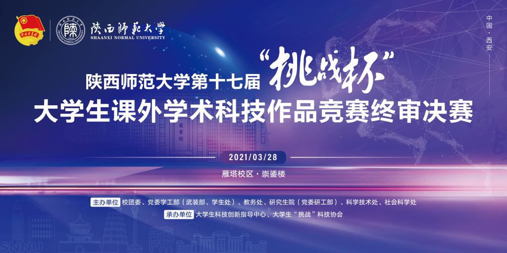 为持续提升我校“挑战杯”大学生课外学术科技作品竞赛参赛作品的水平和层次,有效促进团队间的交流与学习,同时遴选优秀作品参加省级及国家级竞赛,现定于2021年3月28日(周日)在雁塔校区崇鋈楼举办第十七届“挑战杯”大学生课外学术科技作品竞赛终审决赛。本次决赛采取公开答辩形式,欢迎广大师生前来观摩交流。