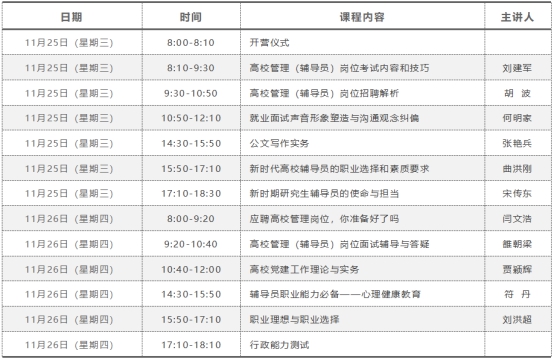 “高校管理(辅导员)岗位求职精准指导训练营”旨在帮助研究生充分了解高校管理(辅导员)岗位的政策、工作内容并提升求职技能与技巧,促进研究生做好求职应聘的相关准备,增强研究生应聘高校管理(辅导员)岗位的契合度与竞争力。