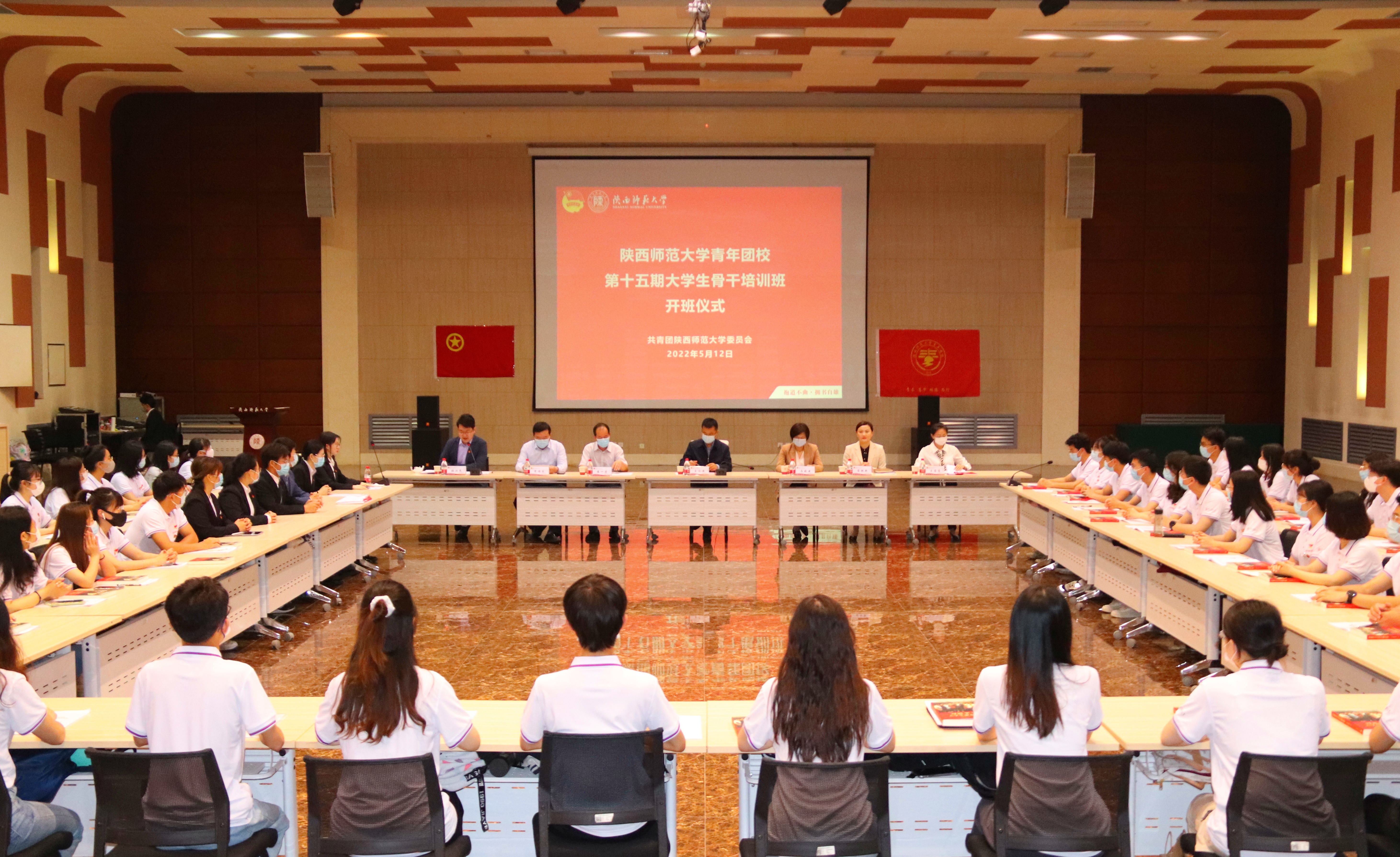 师大新闻网讯 5月12日上午,我校“青马工程”第十五期大学生骨干培训班开班仪式在长安校区新勇学生活动中心多功能厅举行。校党委副书记王永安出席仪式并讲话,为“青马工程”培训班授旗。校党委常委、宣传部部长马晓云及党委组织部、党委学工部、党委研工部、团委负责同志参加会议。