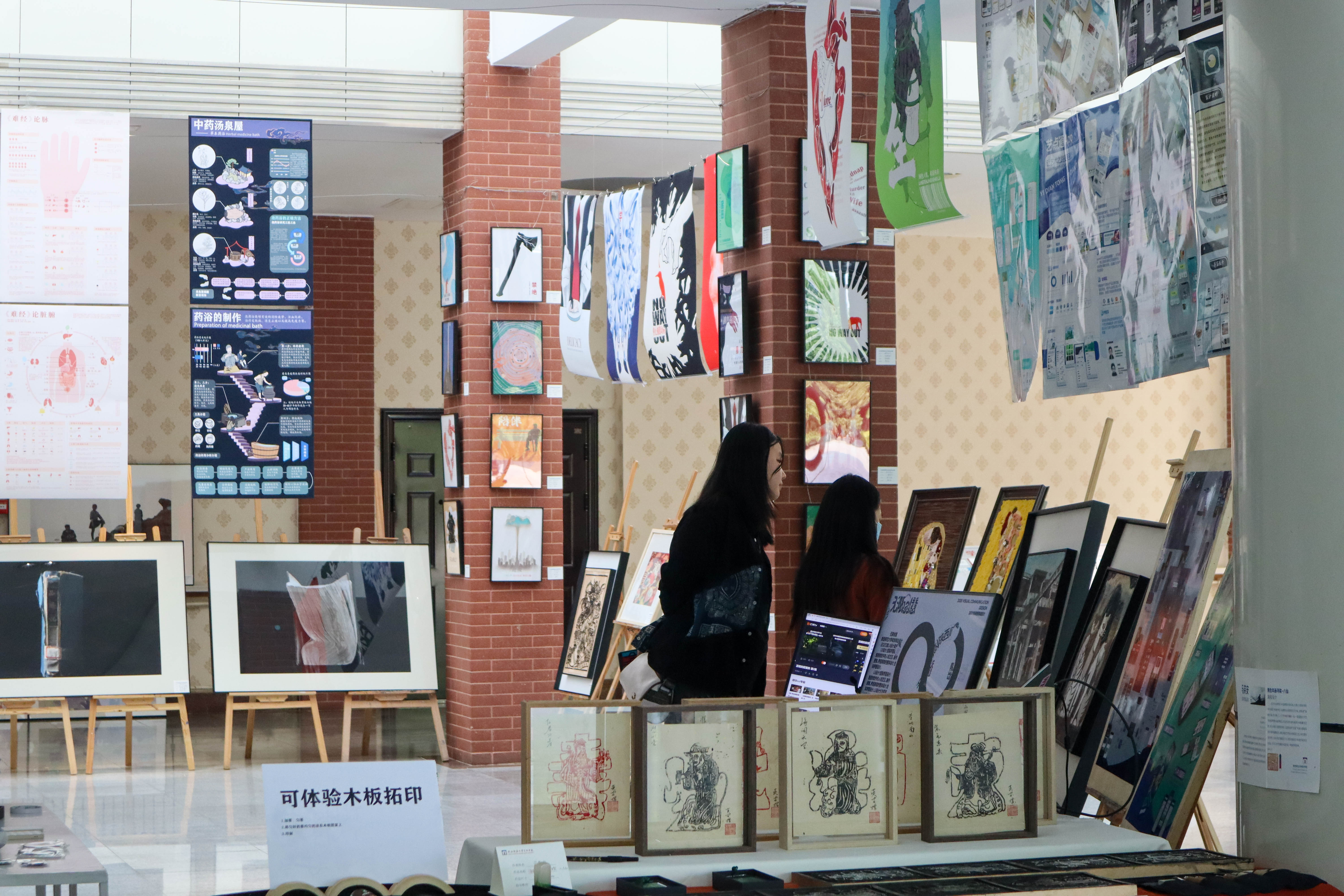 此次展出是美术学院2023年春季学期视觉传达设计专业1-4年级的课堂教学成果,作品涵盖纤维艺术、漆画艺术、文创设计、容器造型、UI设计、信息可视化图表设计、插画绘本、摄影等多种艺术形式。作品设计理念着眼“生态环境”“学习压力”“清正廉洁”“关爱老人”“非遗文化传播”等子主题,集中展现了设计者对社会生态、自然生态、传统文化传承保护的关注和思考。