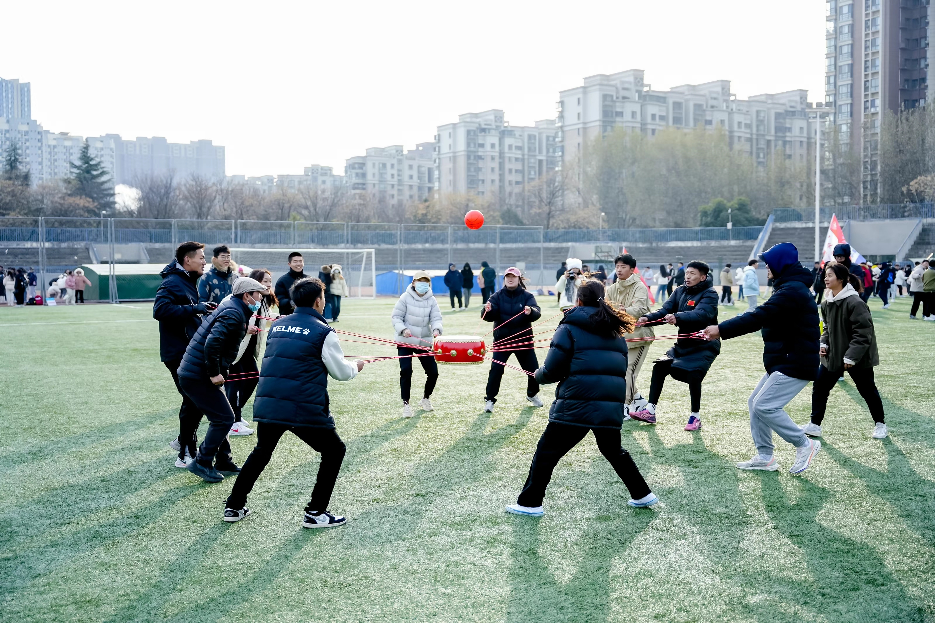 师大新闻网讯12月17日下午,我校首届师生趣味运动会在长安校区田径场举行。活动由学校体育工作委员会主办,党委统战部、党委教师工作部、党委学工部、党委研工部、团委、校工会、体育学院承办,全校千余名师生参加了活动。