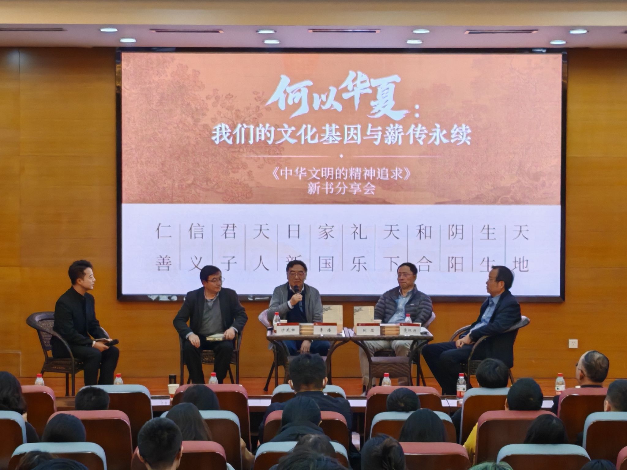 嘉宾分享环节,清华大学人文学院院长刘石教授系统阐释了本书的策划立意与整体结构。他提到,每一个民族的核心价值理念,都是其文明在长期演进中形成的“精神密码”,是构成民族文化认同的核心要素。我校原副校长、文学院教授党怀兴谈到,著作以当代视角重新解读经典精神的文化探索,使古典思想在当代语境中焕发出新的生命力。西北大学文学院教授、中国唐代文学学会会长李浩从文学视角出发,认为文学之美让中华文明的精神追求具象而可感,构成了民族审美与人格理想的共同基石。我校图书馆馆长、历史文化学院教授沙武田以敦煌艺术为切入点,探讨中华文明的“和合之道”,认为丝绸之路文明交汇折射出中华文化兼容并蓄、以和为贵的开放品格。