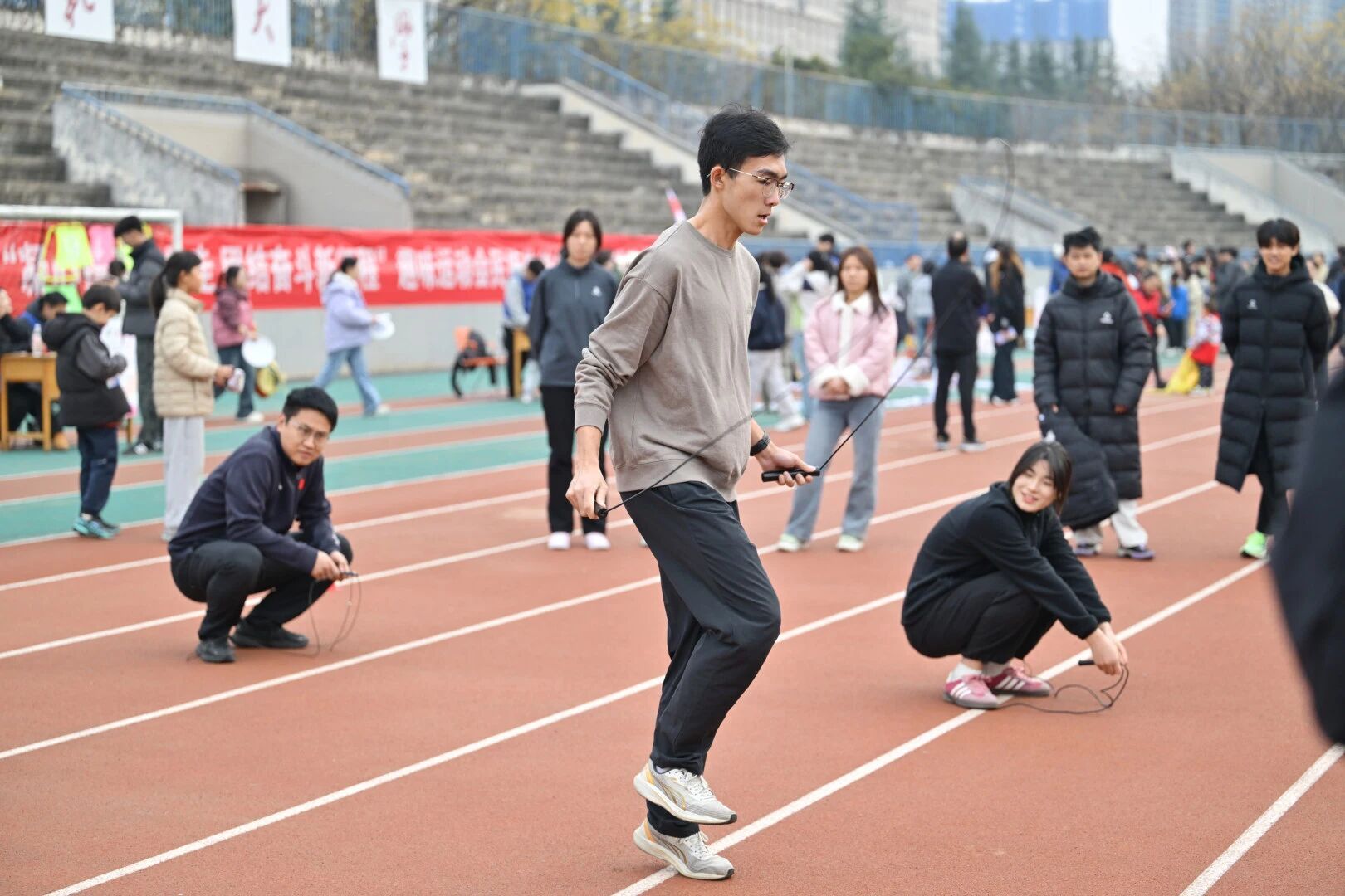 师大新闻网讯冬日暖阳映照青春风采,欢声笑语洋溢师大校园。11月22日下午,我校2025年“凝心铸魂跟党走,团结奋斗新征程”师生趣味运动会在长安校区田径场举行,校党委副书记罗永辉出席活动并讲话。学校体育工作委员会成员单位负责人及千余名师生参加了活动。