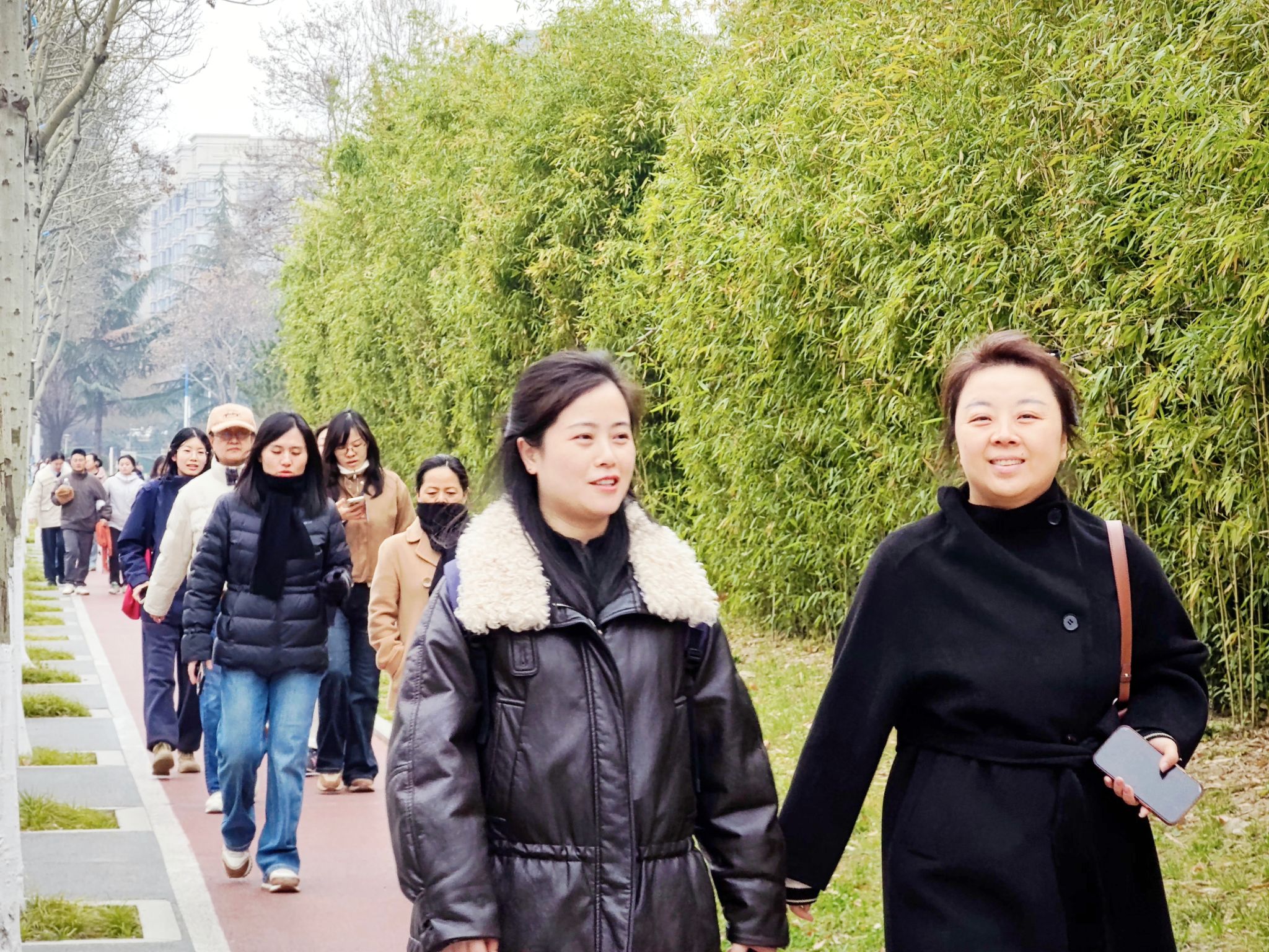 师大新闻网讯 3月8日下午,以“奋进‘十五五’ 巾帼启新程”为主题的女教职工阳光校园健步走活动在长安、雁塔两校区同时开展。来自全校的1600余名女教职工热情参与,在春风中结伴而行,以脚步丈量校园,以运动点燃活力,在春意盎然的校园里感受奋进的力量。