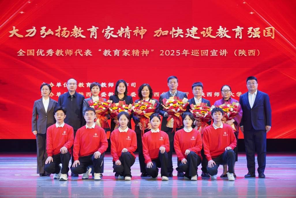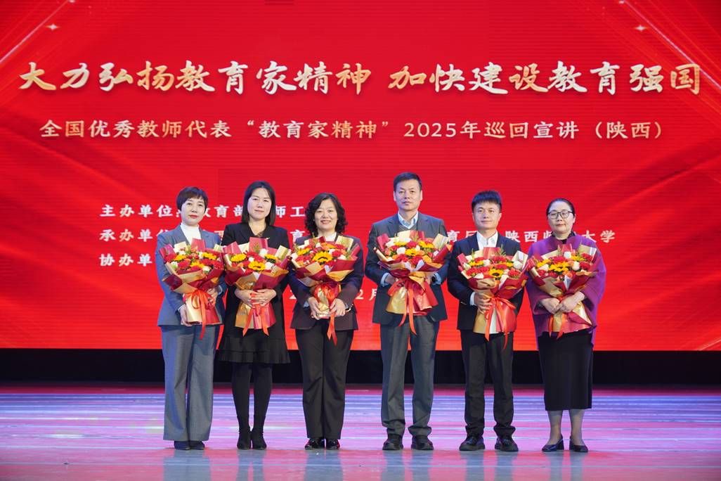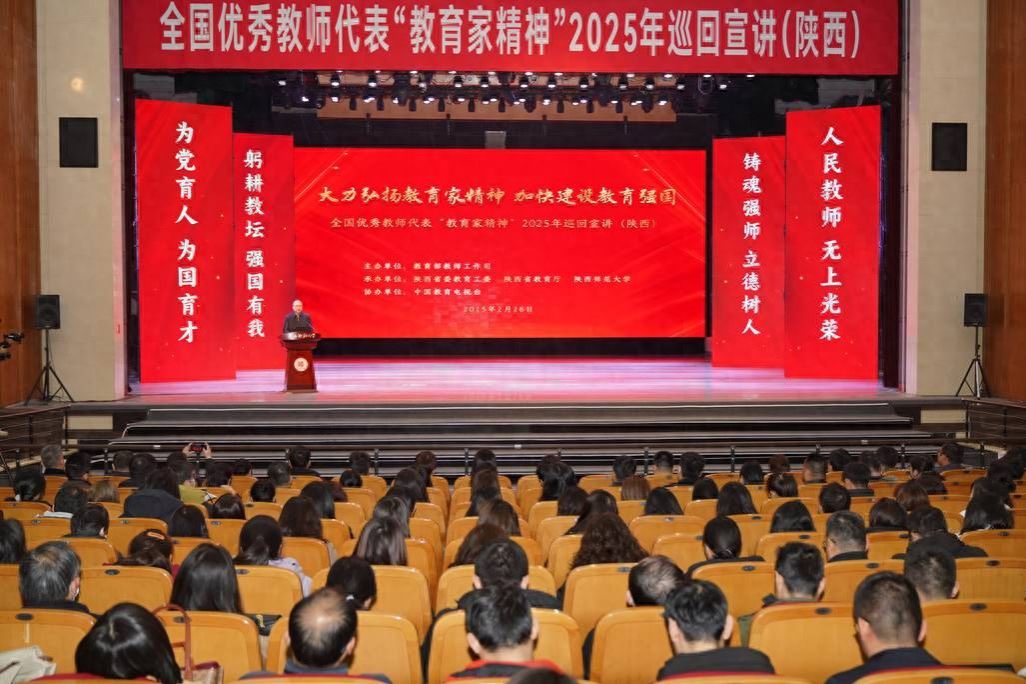 赵鑫表示,教育部举办教育家精神2025年巡回宣讲活动,旨在深入学习贯彻习近平总书记关于教育的重要论述,深入贯彻落实全国教育大会精神,来陕西宣讲是此轮宣讲活动的重要一站,并对广大教师提出一要立师德之魂,以优秀教师为榜样,将教育家精神融入日常,化作自觉价值追求;二要强育人之能,把学习践行教育家精神转化为提高自身科学素养和综合素质的实际行动;三要担示范之责,发挥教学名师、优秀育人团队引领作用,让优质资源辐射更多地区、学校和学生,让教育家精神在协同发展中薪火相传。