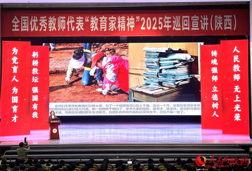 人民网西安2月26日电 (吴德锋)2月26日,全国优秀教师代表“教育家精神”2025年巡回宣讲活动走进陕西,开展宣讲报告会,教育部教师工作司副司长赵鑫出席并讲话。会前,陕西省委教育工委书记、省教育厅厅长王树声,陕西师范大学党委书记李晓兵、校长游旭群与报告团成员交流座谈。会上陕西省委教育工委委员、省教育厅副厅长吴振磊致词,报告会由陕西师范大学党委副书记罗永辉主持。