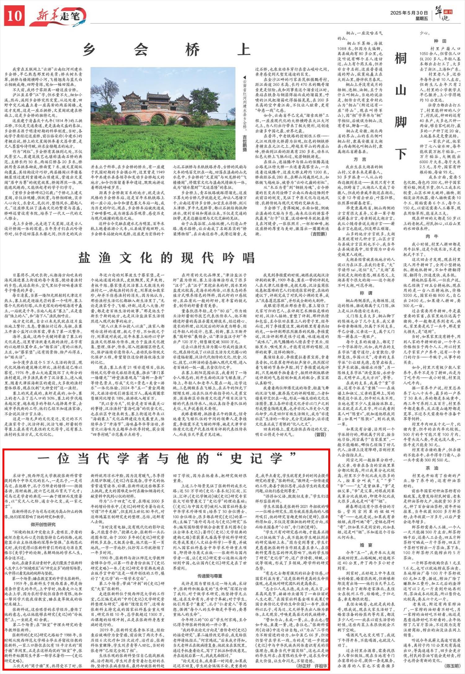 师大新闻网讯 5月30日,《新华每日电讯》在第10版“新华走笔”专版,刊发题为“一位当代学者与他的‘史记学’”的报道文章,新华社客户端、新华网同步转载报道。文章讲述了我校文学院张新科教授数十载治学为师,以孔子为师者榜样,以司马迁为学者典范,在“史记学”领域做开创性研究、在教书育人中传递爱与尊重,以生动的笔触描摹出了张新科教授的学者风范和师者情怀。