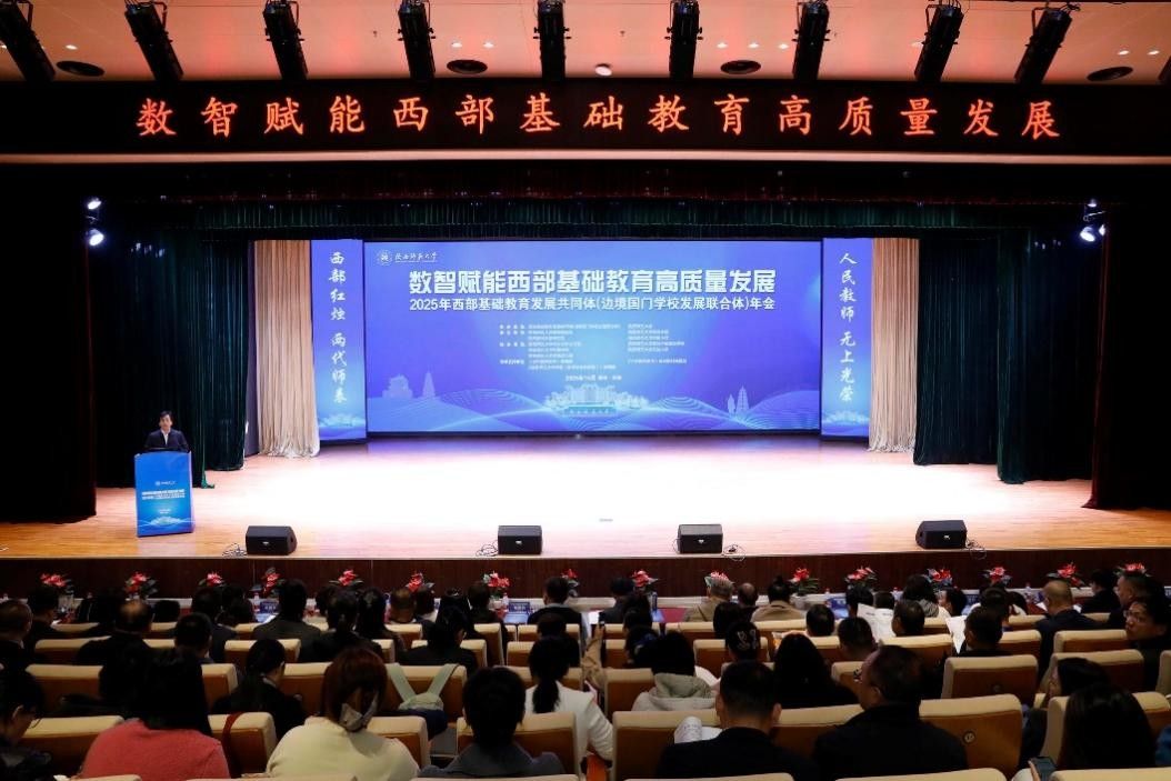 10月25日,2025年西部基础教育发展共同体(边境国门学校发展联合体)年会在陕西师范大学附属小学长安校区举办。陕西师范大学副校长陈新兵、中国教育学会副会长周洪宇出席开幕式并致辞。