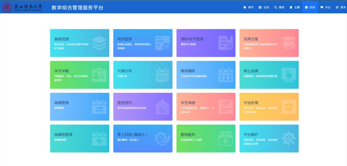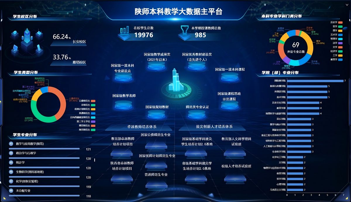 近年来,陕西师范大学深入贯彻落实国家教育数字化战略行动部署,适应数智时代机遇和挑战,推进数智赋能本科教育教学“121+3”行动计划,充分运用人工智能、大数据等现代信息技术,系统性构建覆盖教学、教务、质保全过程的数智化教育教学管理体系,助力本科教育教学质量和人才培养水平持续提升。