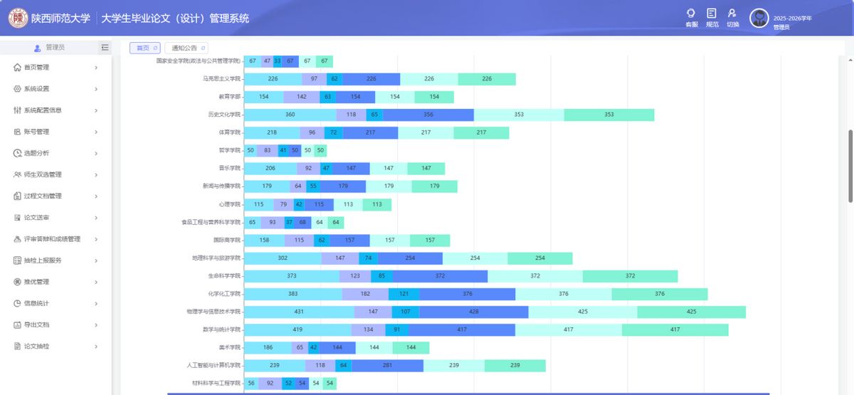 陕西师范大学通过有机贯通教学大数据驾驶舱、教学综合管理服务平台、智慧教学平台、AI巡课督导平台、学生实习综合平台、学科竞赛管理平台及毕业论文全过程管理平台,初步形成了以学生成长为中心、以数据流动为纽带、以智能技术为支撑的智慧教育新生态。不仅实现了管理服务、教学实施与质量监控的闭环运行,也为深化本科教育内涵建设、全面提升人才培养质量开辟了新的实践路径。