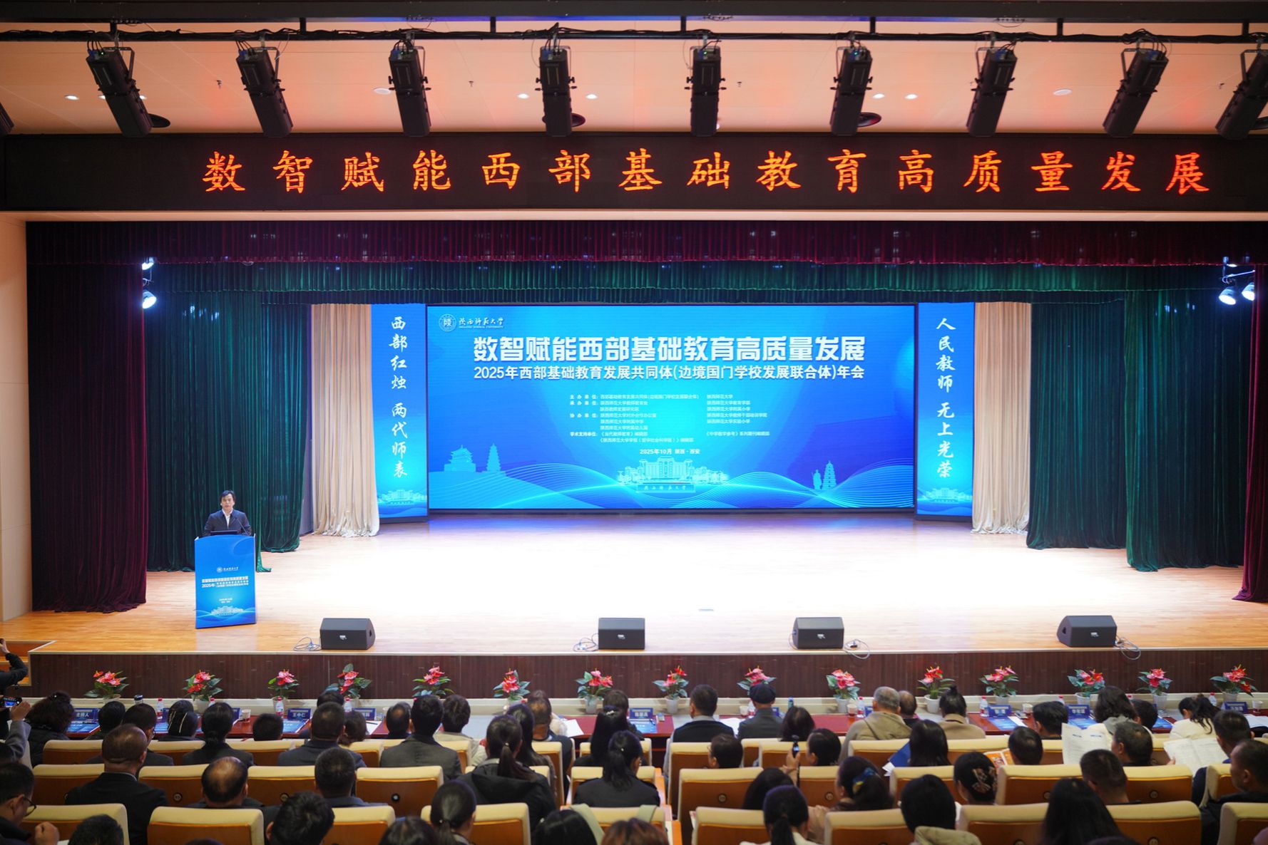 师大新闻网讯 10月25日,2025年西部基础教育发展共同体(边境国门学校发展联合体)年会在我校附属小学长安校区举办。此次年会主题为“数智赋能西部基础教育高质量发展”。中国教育学会副会长周洪宇、我校副校长陈新兵出席开幕式并致辞。