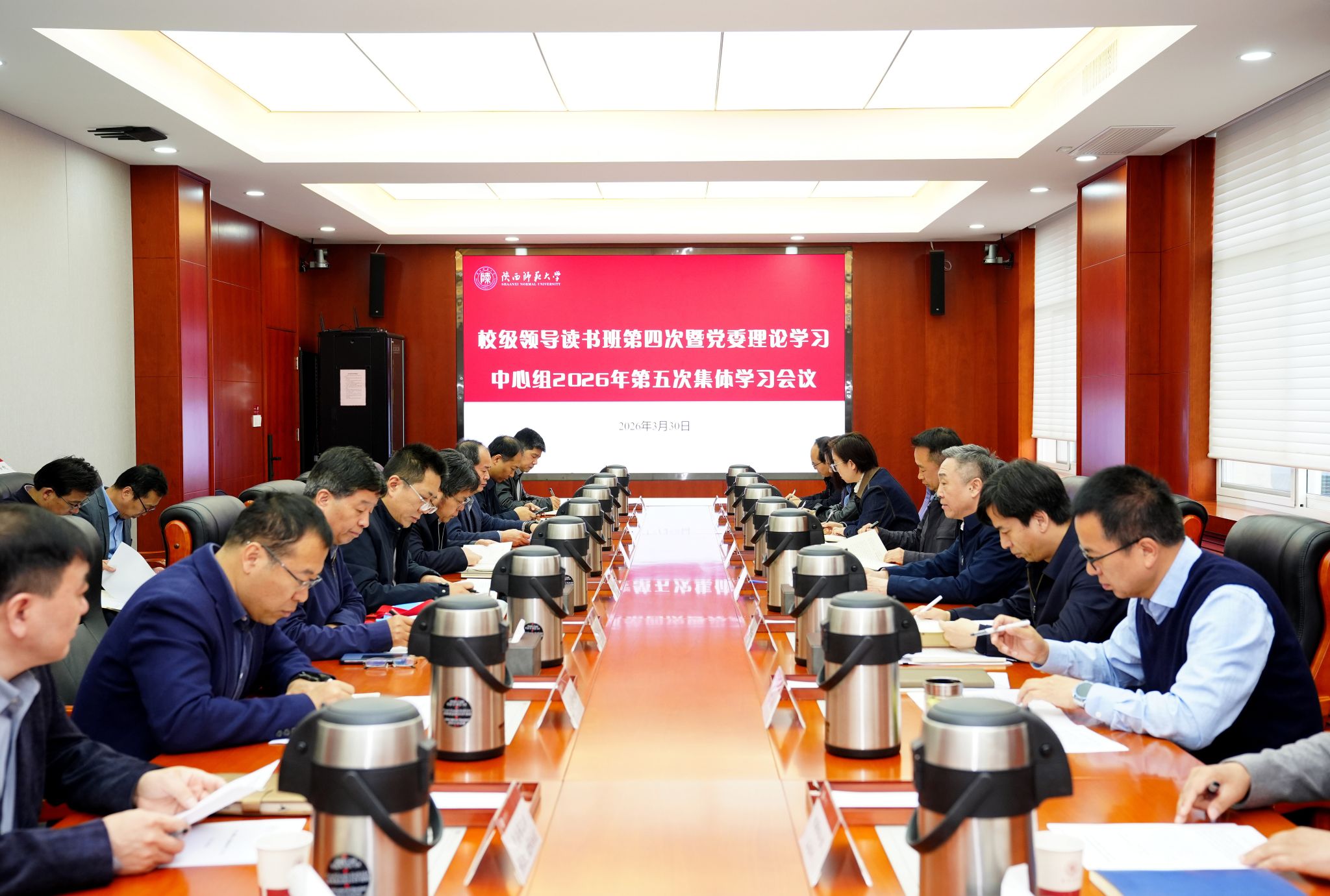 师大新闻网讯 3月30日上午,我校召开校级领导读书班第四次暨党委理论学习中心组2026年第五次集体学习会议,会议主题为对标国家“十五五”规划和教育强国建设纲要,战略性系统性审视学校“十五五”发展规划。校党委书记李晓兵主持会议并讲话。校党委副书记、校长陈新兵参加会议并讲话。