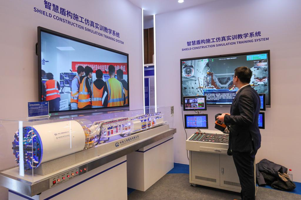 2024世界数字教育大会于1月29日至31日在上海举办。1月30日,工作人员在“数智未来”教育展上演示智慧盾构施工仿真实训教学系统。新华社记者辛梦晨摄