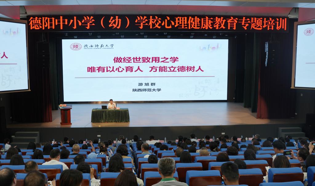 当天下午,调研组前往德阳市调研。在德阳市祁连山路小学,游旭群应邀以《做经世致用之学——唯有以心育人,方能立德树人》为题作报告。报告由德阳市委教育工委专职副书记吴若玉主持。德阳经开区党工委委员、机关党委书记李媛媛,德阳经开区社事党工委书记、社事局局长田裕波出席。来自德阳市教育系统的600余名干部、教师听取了报告。