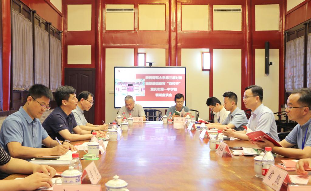 会后,调研组前往重庆市第一中学校走访调研。双方就当地基础教育发展需求与教师队伍建设需求等方面进行交流。会上,我校与重庆市第一中学签订《陕西师范大学优质生源基地合作协议》,陈新兵代表学校授牌重庆市第一中学“优质生源基地