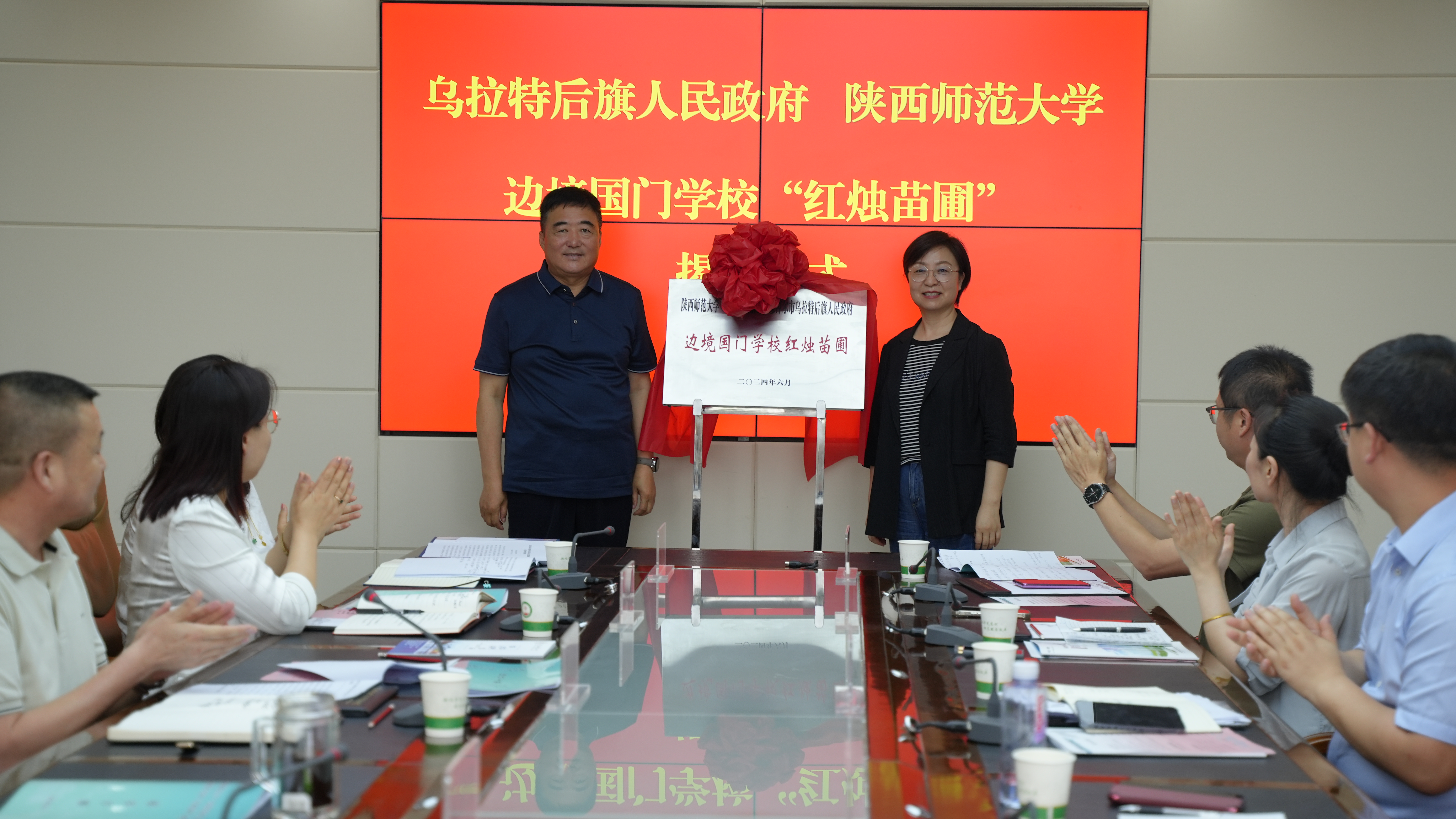 19日,调研组一行在巴彦淖尔市乌拉特后旗调研。乌拉特后旗与陕西师范大学在旗人民政府举行边境国门学校“红烛苗圃”揭牌仪式。罗永辉和旗委书记王银保现场揭牌并进行边疆教育发展座谈。罗永辉表示,学校将发挥部属师范大学办学优势,在乌拉特后旗深入实施“边境国门学校红烛育人行动”,不断深化拓展校地交流共建广度深度,使其成为集社会实践、实习见习、人才培养、资政服务、师资培训等于一体的综合实践教育基地,更好地服务乌拉特后旗教育事业发展。王银保表示,乌拉特后旗将以此次边境国门学校“红烛苗圃”揭牌为契机,深化两地教育合作交流,希望陕师大发挥教育资源优势,全力支持乌拉特后旗实现“教育强旗”目标,乌拉特后旗将进一步优化服务环境,为“红烛苗圃”服务边疆大地提供坚实保障。