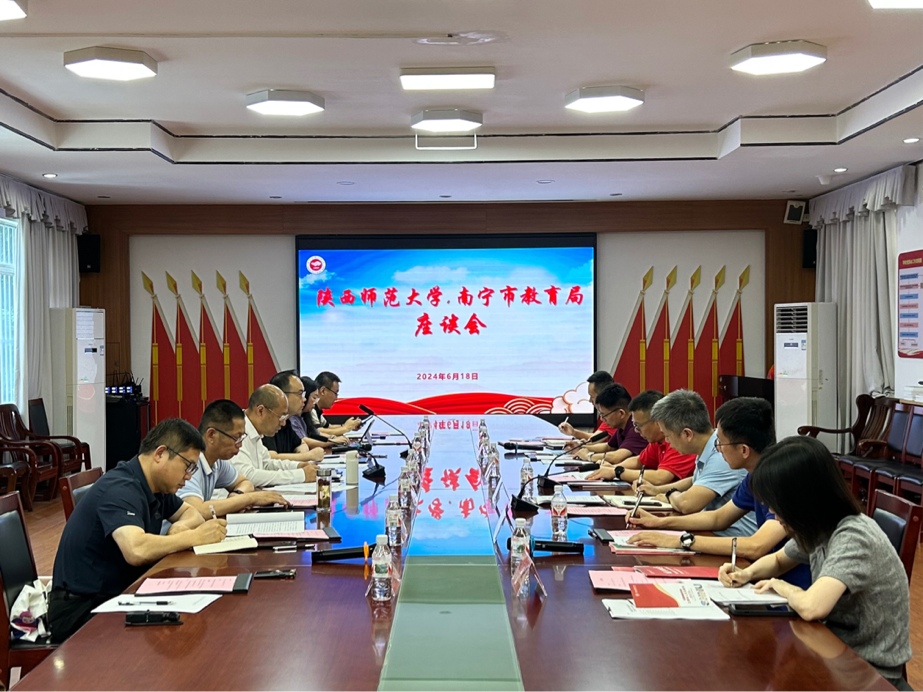 18日下午,调研组赴南宁市教育局展开座谈调研。南宁市委教育工委委员、南宁市教育局副局长、南宁市第三中学党委书记韦坚介绍了南宁市教育基本情况,希望在加强校地联动、建立实习就业基地、优化教师培训项目等方面得到我校更多帮扶与支持。李磊介绍了我校公费师范生、“优师计划”等人才培养政策以及教育硕士、教育博士等教师职后培养情况。他表示,此次会谈为双方搭建起合作的桥梁,未来我校将持续发挥教师教育优势、教师培训资源优势、人才培养优势,为广西教育事业持续向上向好发展贡献力量。南宁市教育局相关处室代表、南宁市邕宁高级中学、南宁市第二中学、南宁市第三中学学校领导参加座谈会。