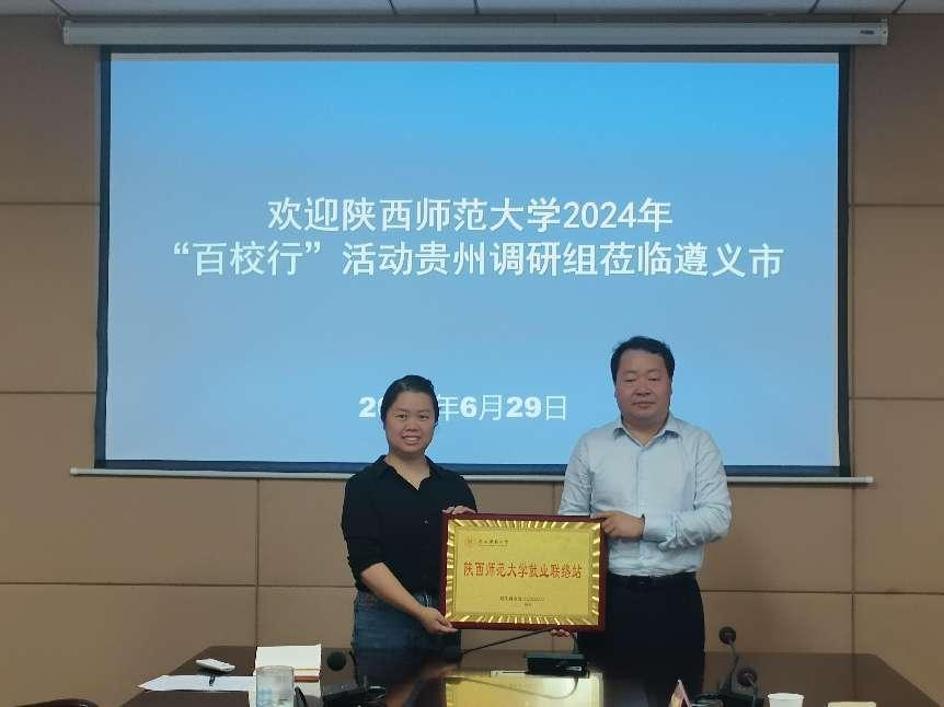 29日,调研组赴遵义市调研。与遵义市教育行政部门进行座谈,就开展 “唯有以心育人 方能立德树人心育计划示范基地建设方案”合作达成意向,在遵义市教育局建立“陕西师范大学就业联络站”,分别为遵义市第四中学、遵义市滨湖中学授予牌“陕西师范大学就业基地”。王云博希望两所学校以此次“就业基地”建立为契机,加强与我校的沟通交流,在吸引师大优秀毕业生赴当地就业任教方面发挥“领头羊”作用,带动遵义市与我校的人才交流与互动。